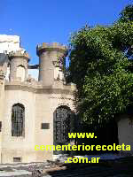 La más medievalEsta bóveda parece sacada de un libro de cuentos.Es un castillito de arquitectura medieval que pertenece a la Asociación Calpense de Socorros Mutuos, que no suele ser visto por quienes visitan el cementerio, ya que se encuentra en un lugar recóndito. Texto: Susana Espósito - Foto Recoleta: Luis Leoz |
